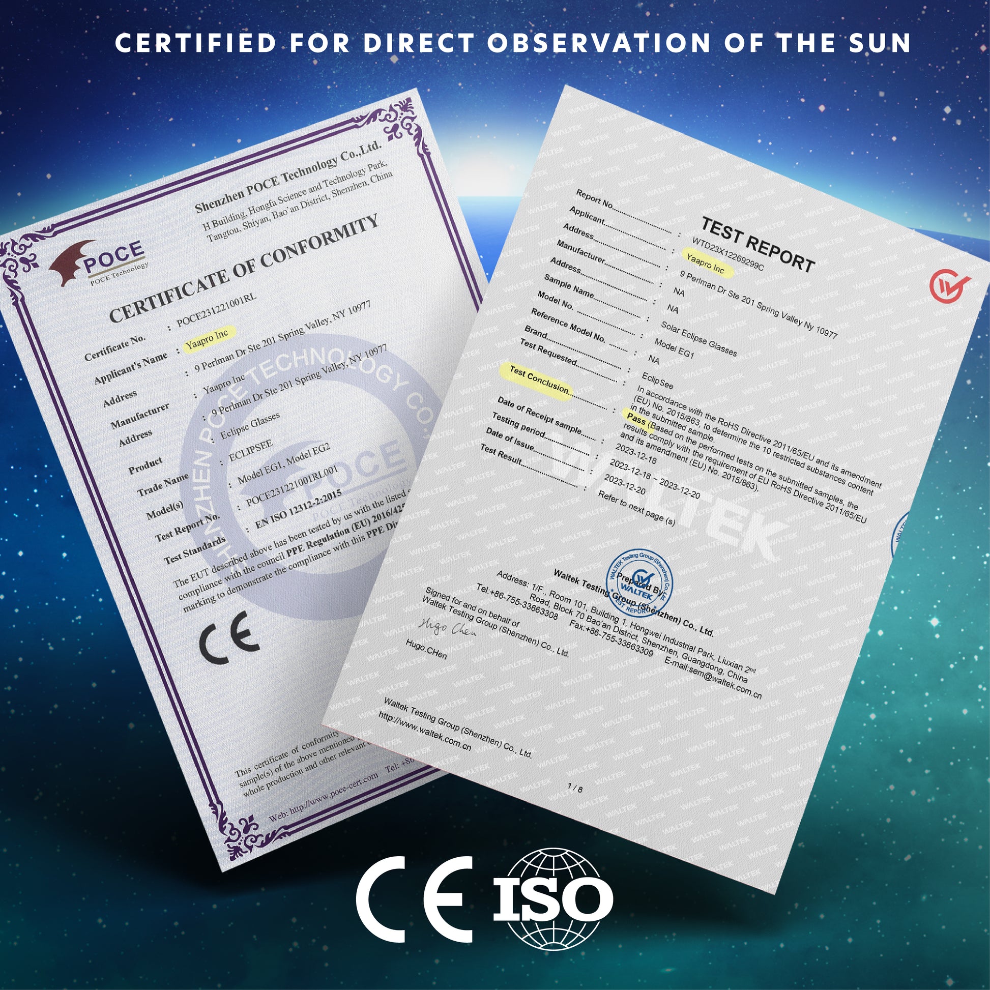Enjoy Safe Sun Viewing - Our ISO & CE certified solar eclipse glass meets the strictest safety standards to ensure they're safe for direct viewing & observation of the sun.
